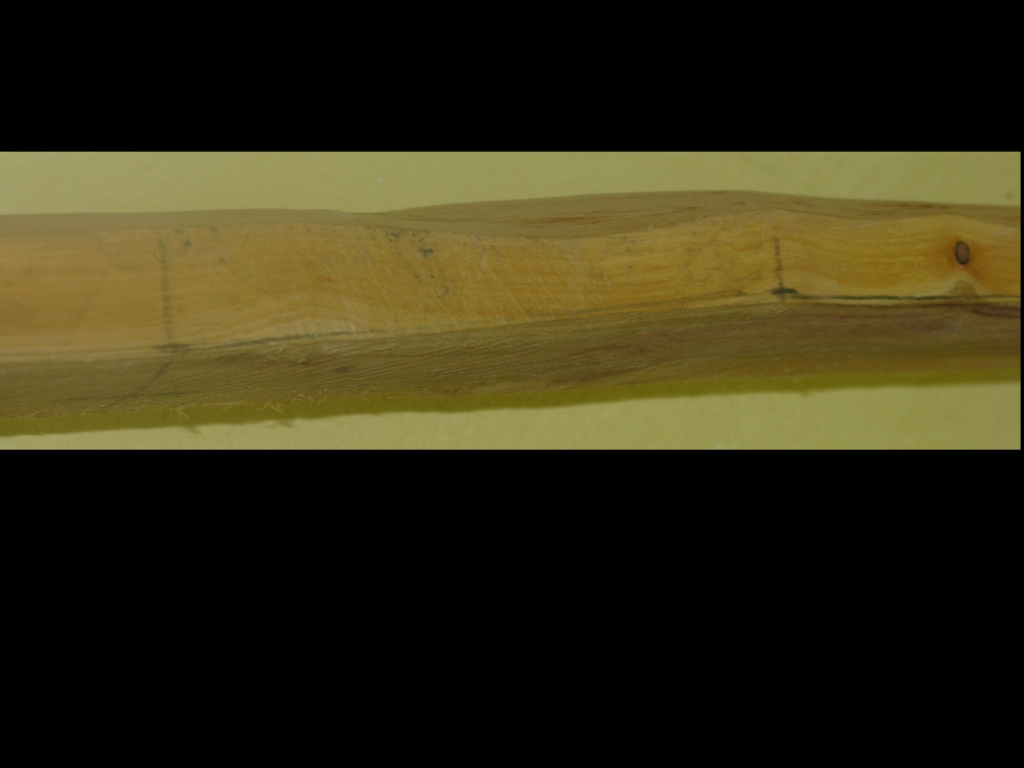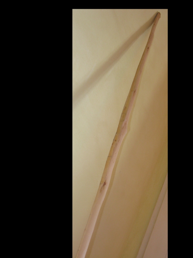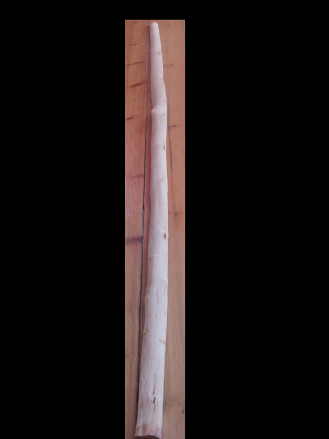 Länge 180 cm, Breite 4 cm, Dicke in der Mitte des Stabes: 2,5 cm, Dicke an den Enden: 1,5 cm