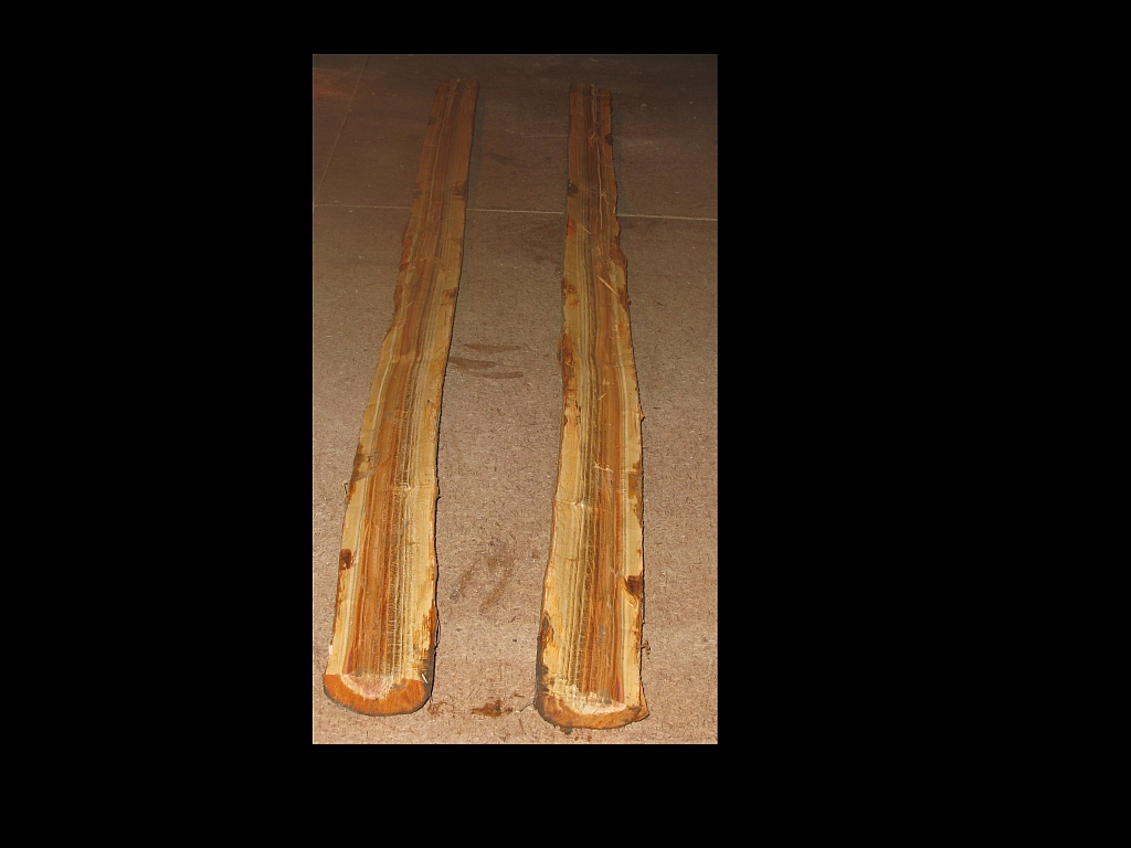 Die Hölzer sind von der Riss-Neigung und vom Schwund, sowie in Farbe und Härte unterschiedlich. Es lohnt sich immer, den Stave bei der Bearbeitung rückzuspannen. Dadurch gibt man eine Richtung vor und der Stave verwindet nicht so leicht zur Seite.