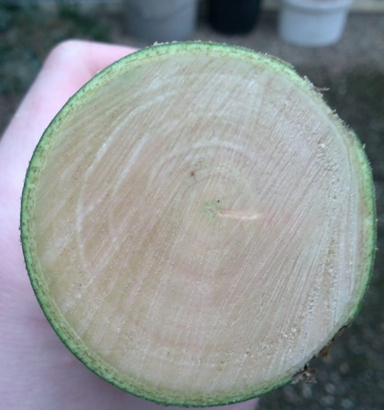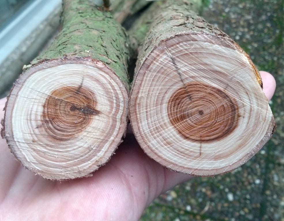 Was ich mit dem dicken Stamm Ilex mache, weiß ich noch nicht so genau. Ist eigentlich für Bogenbau zu schade bei einem Durchmesser von knapp 20 cm.