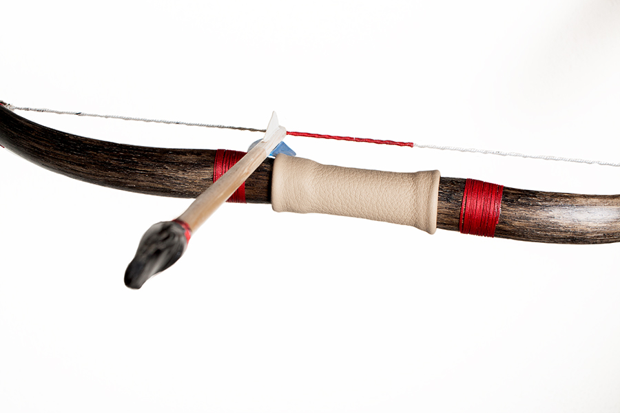 Der Bogen wurde danach mit Ebenholzlasur bestrichen und mit Holzlack versiegelt. Die Wicklungen sind reine Zierde. Die Sehne ist ne einfache Schnur aus dem Baumarkt. :-/ Erstens hab ich immernoch kein neues Garn da und zweitens ist so die Sehne etwas dicker und (denke ich) für ein Kleinkind einfacher zu fassen.