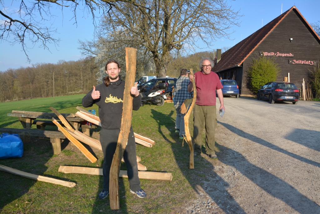 Beim Lord hab ich die Staves der Osage-Challenge an Bord genommen, und dazu noch etwas Esche die er dem SBBT spendierte. Bei den Staves von Chirions Challenge konnte ich mir das Grinsen nicht verkneifen, ich könnte daraus maximal ein Bogenregal bauen, aber kein Regal voller Bögen! Wenn man aber die Herausforderung liebt, sind die sicher geil.