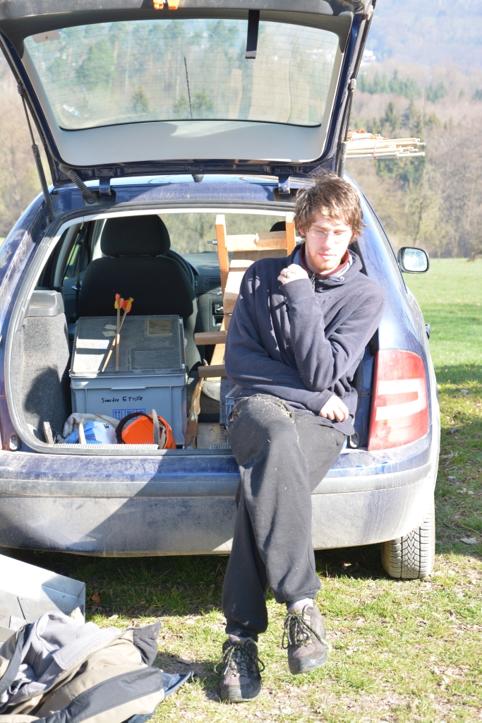 Endlich auf der Jungviehweide angekommen wurde mir die Strafe der zu spät gekommenen zuteil. Alle waren schon schön am Schnitzen und Bier trinken und Schießen und Spaß haben und überhaupt! NEID! Bzw. der gute, gute Beblibrox am Wurstsalat schnibbeln! Kein Neid!