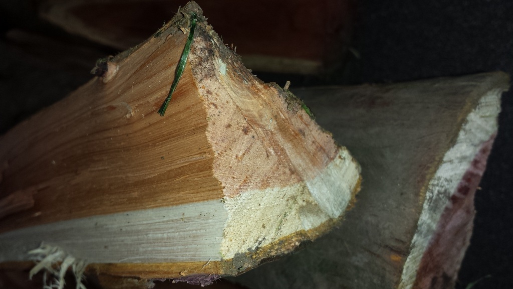 Meins ist auch mehr so "such dir doch aus, ob du Axtstiel oder Brennholz sein willst"-Holz ... wenns trocken ist, weiß man mehr.