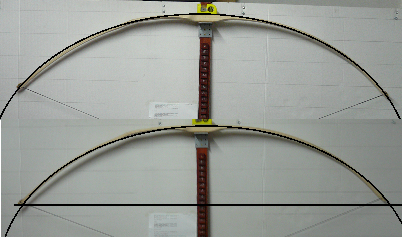 PS: "Stärker" heißt leider NICHT automatisch "schneller"... Die Bogengeschwindigkeit entsteht nicht nur durch die Kraft, sondern auch durch die Reaktionsgeschwindigkeit des Holzes. Beim Tempern wird der Bauch verhärtet, womit ein Teil der Längenänderung (infolge des Krümmens) auf den Rücken verlagert wird. Das Holz am Rücken kommt dadurch näher an seine Streckungs-Grenze (und näher an die Bruchgrenze