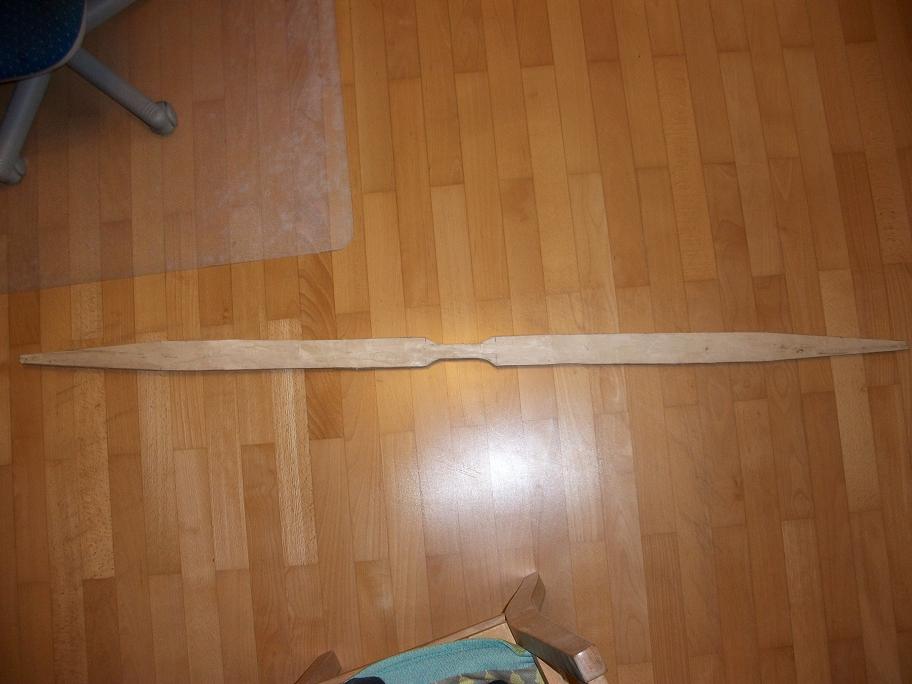 Etwas Theorie: Wenn es darum ginge, den Bogen stärker zu machen, dann wären 1 - 2 mm Facing das Mittel der Wahl. Der Zugstärke der Esche könnte man dann z. B. Schwarznuss, Eibenkern, Osage, Massaranduba oder Hollunder gegenüberstellen.
