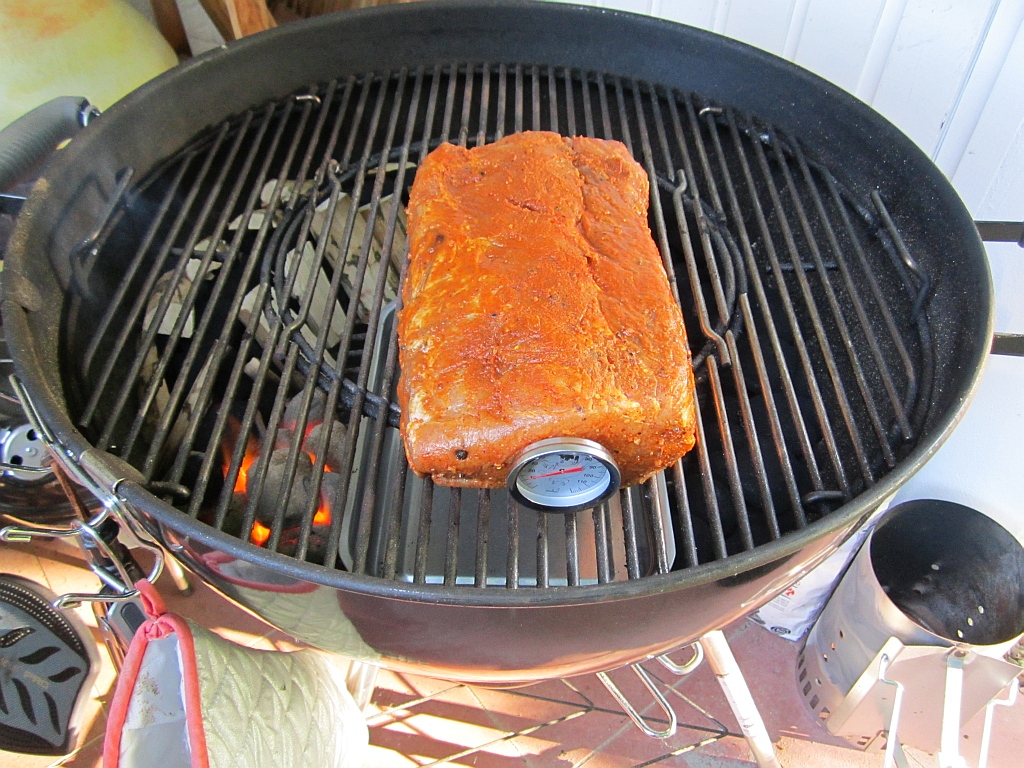 Was macht der BBQer abends um zehn? Sich ein Bierchen genehmigen und sich aufs Grillen ab morgen früh um sechs freuen. Wetter paßt, Besuch kommt, Zeit ist reichlich vorhanden, also los! Das haarigste kommt wohl morgen früh, wenn ich den Grill anzünde und die Temperatur einregele. Das hab ich so genau noch nicht gemacht. Hier ein paar Bilderchen zur Doku der Vorbereitungen: