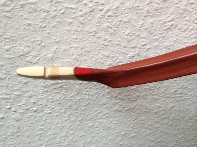Der Arrowpass hat jetzt 23mm. Es werden mit Leder wohl 25mm werden. Guter Vorsatz für nächsten Bogen: diese Stelle noch enger machen.