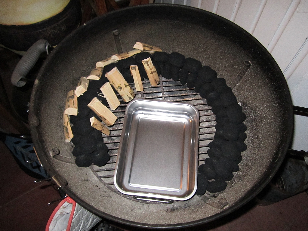 Was macht der BBQer abends um zehn? Sich ein Bierchen genehmigen und sich aufs Grillen ab morgen früh um sechs freuen. Wetter paßt, Besuch kommt, Zeit ist reichlich vorhanden, also los! Das haarigste kommt wohl morgen früh, wenn ich den Grill anzünde und die Temperatur einregele. Das hab ich so genau noch nicht gemacht. Hier ein paar Bilderchen zur Doku der Vorbereitungen:
