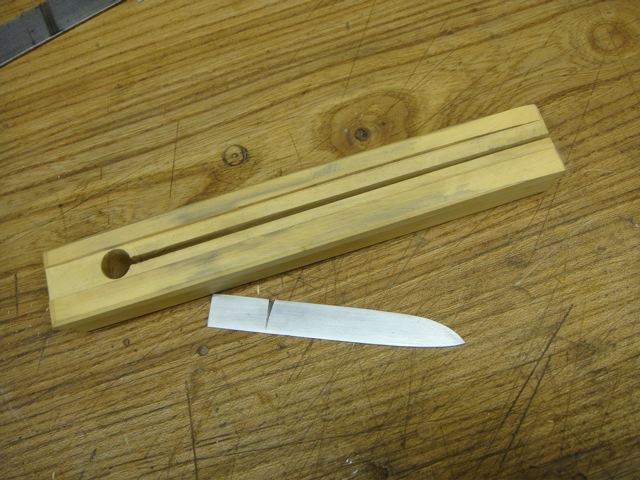 Klinge kann nun gehärtet werden - vor dem Einnieten des Arretierungsstiftes