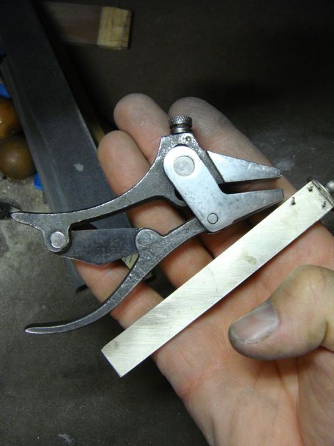 2. Remaud faltet seine Griffe aus einem Blechstreifen - eigentlich die simpelste Methode... aaaaber man muss für eine saubere Faltung etwas tüfteln. Und man muss ja hinten dann immer noch Endplatte und Ring fertigen, vernieten (oder löten) usw. Ich habe den Endteil hier fertig und niete nur meine Seitenbleche dran.