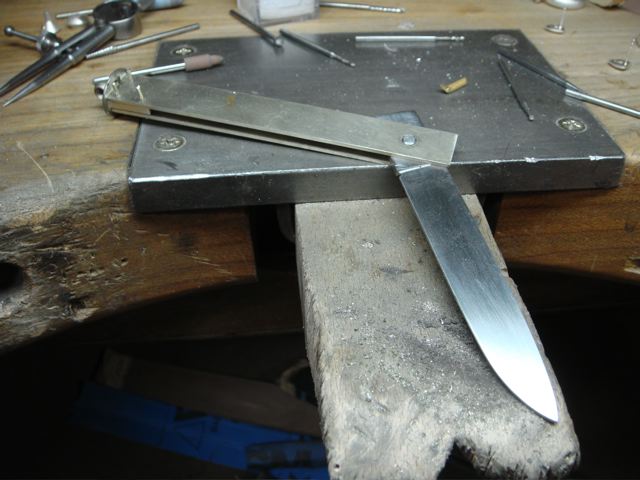 Man sollte nun evtl auch schon die Flachseiten des Angelpunktes an der Klinge polieren... die sollten natürlich wirklich plan und parallel sein damit das Gelenk möglichst spiel- und verschleissfrei arbeitet.