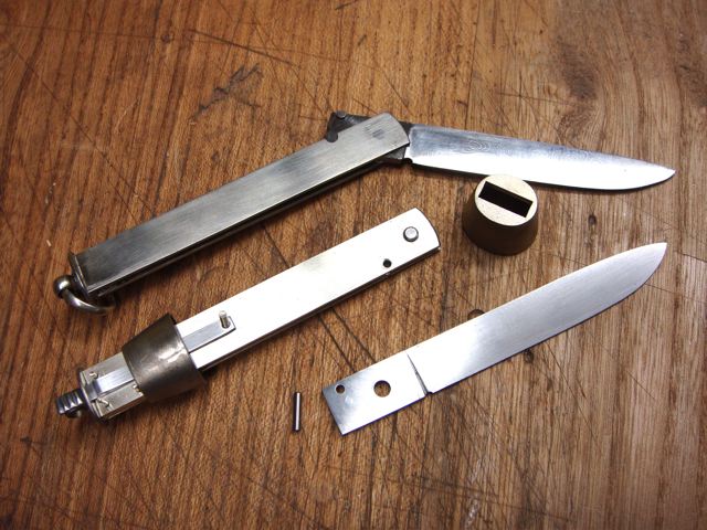 Remaud Mechanik - gefaltet und vernnietet. Messingniete ist der Anschlag für die Klinge beim Zusammenfalten