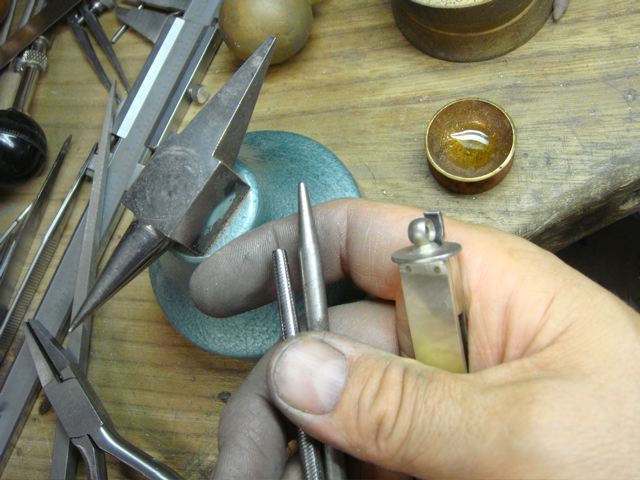 Zuletzt kommt Verkleben der Kappen... Form fertig schnitzen, feilen (mitsamt Kappen), schmirgeln... und dann erst ganz zum Schluss die Verriegelung...