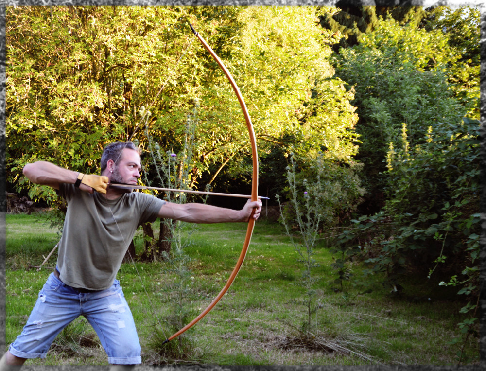 Soweit sogut. Ein unbemerkter Holzfehler zwang mich jedoch dazu den Bogen schmäler zu schneiden, als ich eigentlich vor hatte. Die Rettungsaktion ließ mir 72" Eibe mit knapp 40mm Breite übrig, die sich im Endeffekt mit einer coolen Performance bedankt. Mit 108#@32" ein echt geschmeidiger Begleiter.