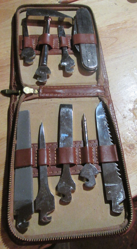 Es kommt mit einem schönen alten Lederetui, einem Messer und diversen " Anbauteilen ".