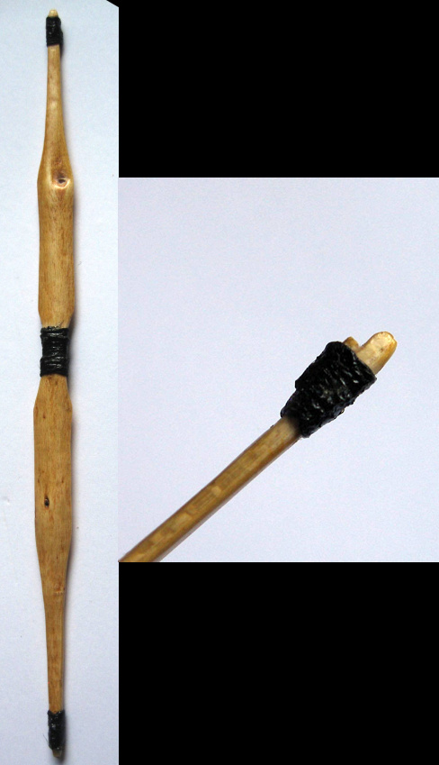 Ich hatte vorort nur das Taschenmesser, Sekundenkleber, Leinenzwirn, ein paar spitze und runde Kiesel, zum Finish zu Hause dann noch etwas Stahlwolle und Schelllack.