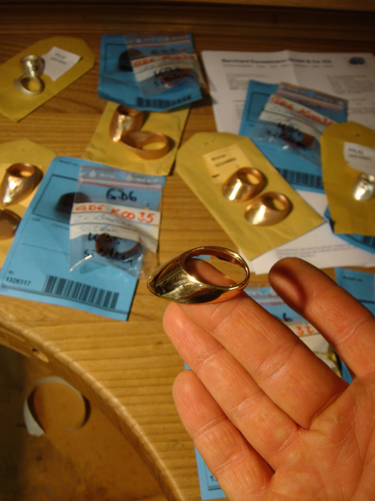 Ich hab' heut' schon gleich mal die Gusskanäle abgeschnitten und verfeilt. Zwei der Ringe hab' ich auch schon angefangen zu versäubern. Sieht alles recht gut aus. Und ein gutes Spektrum an Grössen und Formen haben wir da auch. Manche der Ringe sind recht massiv - Gewicht geht von ca 17g bis über 40g...