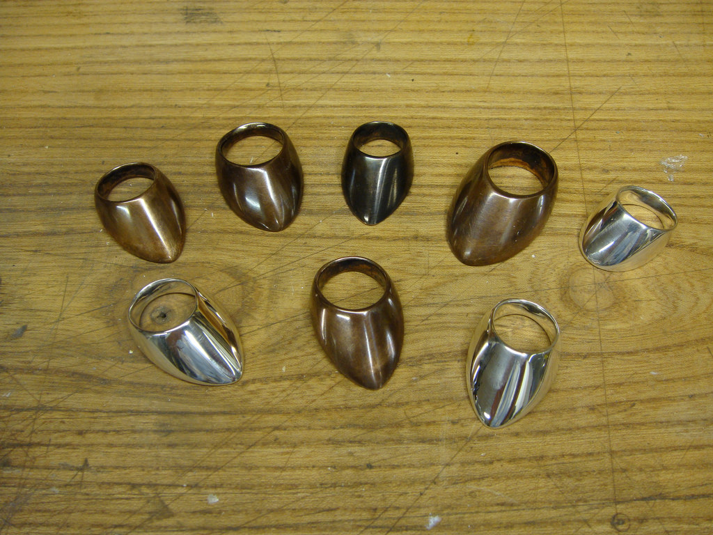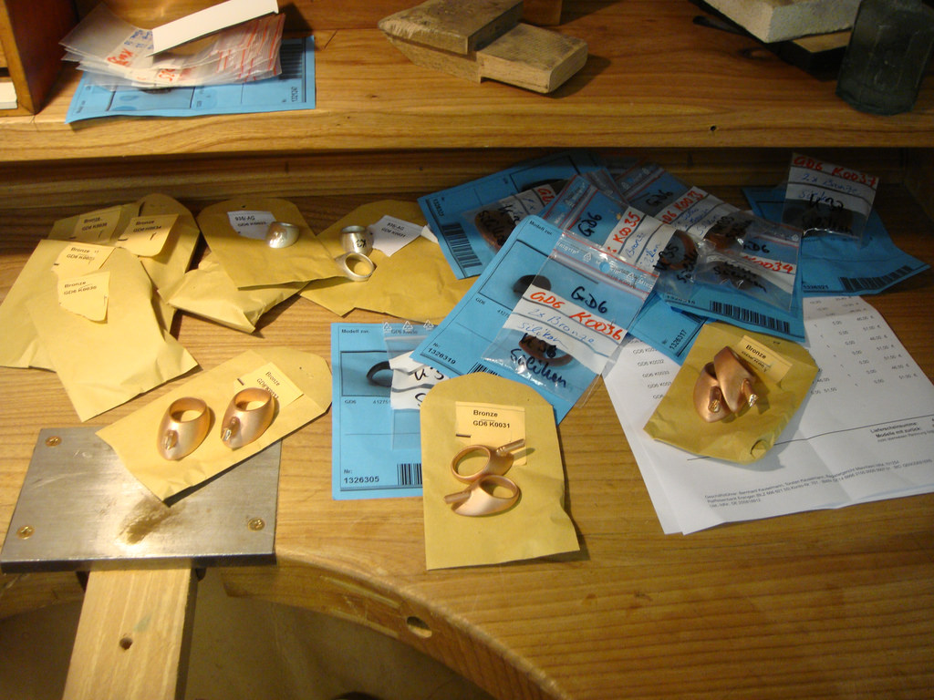 Ich hab' heut' schon gleich mal die Gusskanäle abgeschnitten und verfeilt. Zwei der Ringe hab' ich auch schon angefangen zu versäubern. Sieht alles recht gut aus. Und ein gutes Spektrum an Grössen und Formen haben wir da auch. Manche der Ringe sind recht massiv - Gewicht geht von ca 17g bis über 40g...