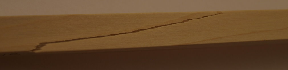 Der Bruchverlauf folgt im wesentlichen den Jahresringen, geht mitunter aber auch durch Ringe hindurch. Wie zum Beispiel beim Muster mit 6 Ringen mehrfach zu erkennen. Beim Muster mit 5 Ringen erfolgt sogar der Bruchansatz am Rücken quer durch einen Ring.