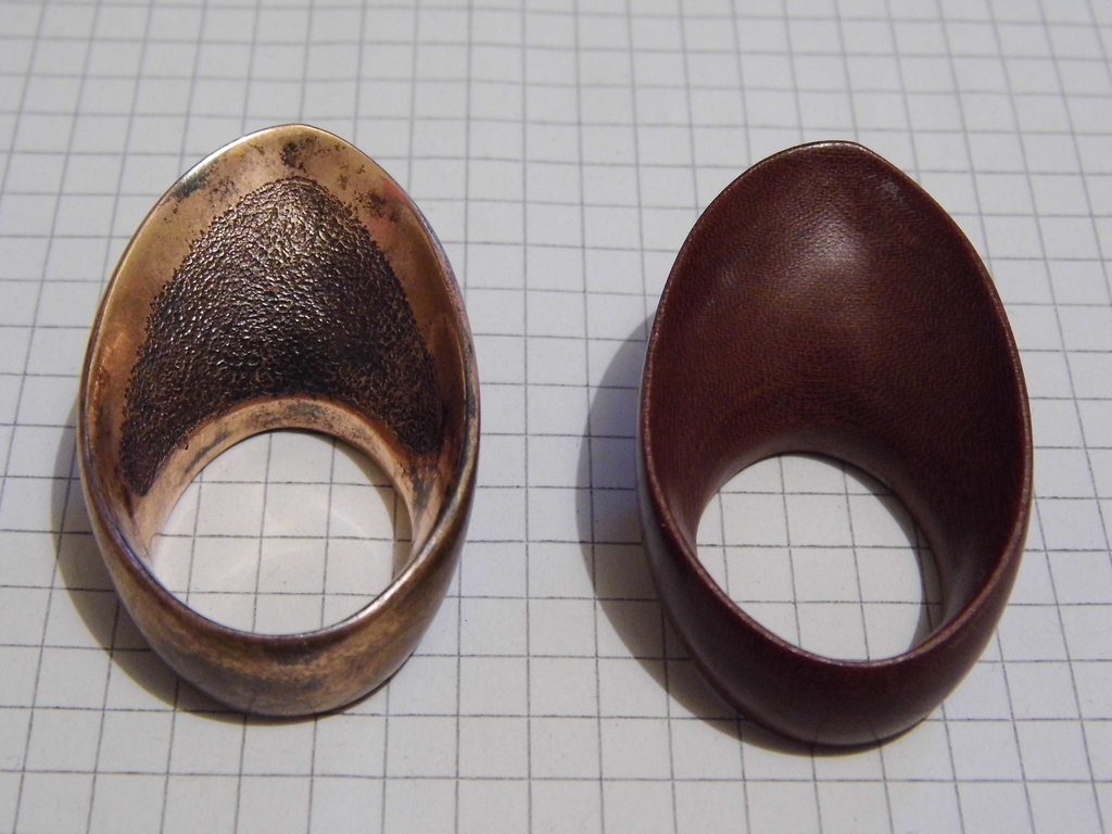 Ergebnis: der silberne Ring (der ja der Originalabguss ist) ist ein bisschen kleiner als die Vorlage, der bronzene Wunschgemäß etwas größer, wenn auch nur minimal, was aber ja meinen Wünschen entspricht.