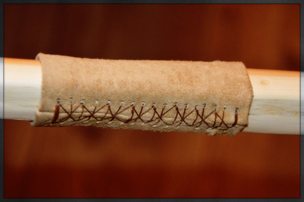 72" Eibe mit 50#@32", eingeschliffene Wasserbüffel Nocken, handvernähtes Wildleder als Wrap, Pfeilanlage aus Knochen und eine 12 Strang BCY Speedflight.