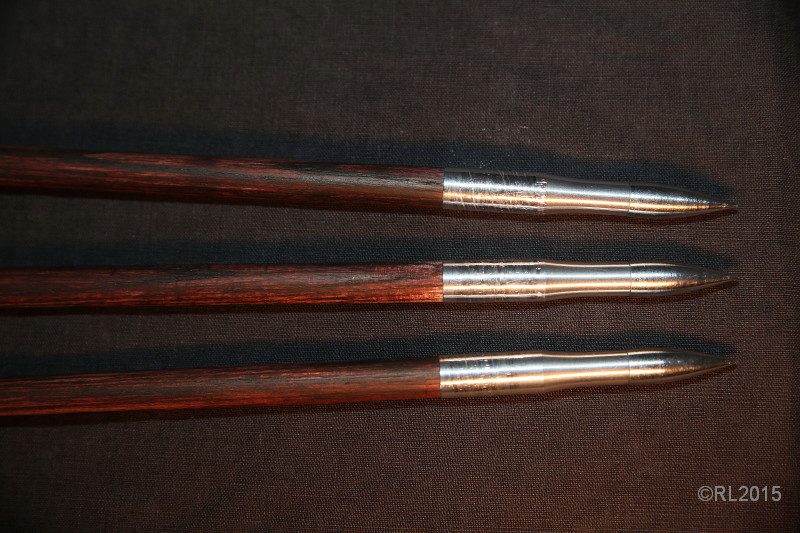 Barrel-taper: Spitze 5/16", Mitte 11/32", Nocke 1/4" (Schaft gehobelt und geschliffen)