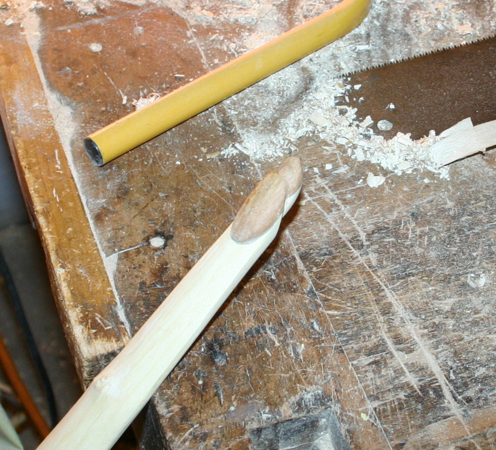 Ich bin auch froh, dass ich jetzt fertig bin. Ich werde mich die nächsten Wochen damit befassen, aus Fichtenstangen eine Ladung Wurfspeere zu schnitzen. Außerdem sind auch noch 20 Speere für die Speerschleuder zu machen und so habe ich für den Bogenbau in den nächsten Wochen keine Zeit.
