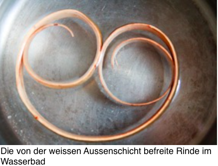 4. Die Birkenrinde von der weissen Aussenschicht befreien: