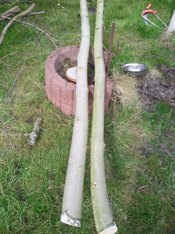 habe von einem bekannten der im wald holz macht 3 schöne stämmchen bekommen ( 1x haselnuss , 2x unbekannt)