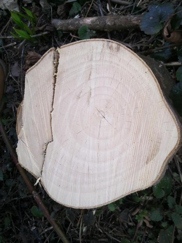 Bitte mach mal ein scharfes Bild von der Stirnseite, auf dem man gut (!) die Jahresringe erkennen kann.