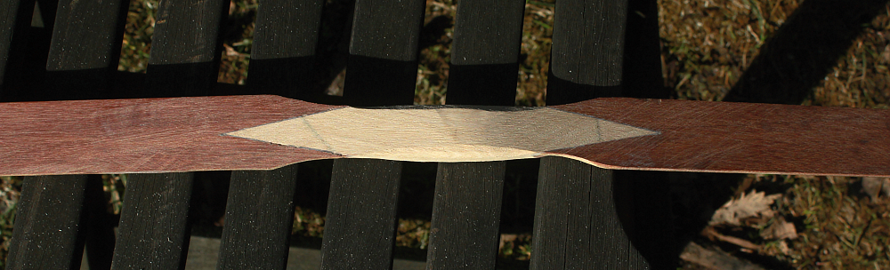 So, das erste Aufspannen und schießen gestern mit 20 lbs hatte er klaglos überstanden, aber heute Abend hatte es beim Aufspannen im Griff einen Knaks gegebe. Habe nochmal nachgedacht und die Bilder betrachtet. Dabei habe ich gesehen, daß ich im Griffbereich einen Fehler gemacht hatte. Der Spleiß ist viel zu kurz.