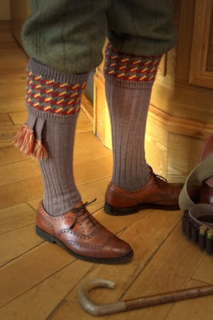 schottische Strumpfhalter besitze ich... zu meinen Kilts... ich konnte mir schwer vorstellen dass das auch zu Kniebunthosen getragen wird... Deine Begriffe "breeks" oder "plus fours haben mich belehrt...