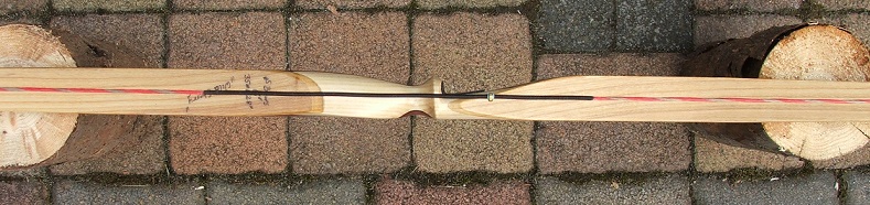 Heute habe ich es endlich geschafft ein paar Bilder zu machen und will euch deshalb gleich den neuen Bogen für meine Frau vorstellen. Es ist ein Glas belegter Langbogen im Deflex Reflex Design und dazu der Grund warum ich überhaupt mit dem Glasbogenbau angefangen habe. Da sie helles Holz wollte, habe ich mich für Kirsche entschieden. Die Wurfarme sind aus drei Laminaten ohne extra Furnier unterm Glas. Am Bauch und Rücken ein Kirschlaminat und in der Mitte Ahorn. Das Griffstück ist aus Esche und einer Einlage aus Amaranth als Kontrast, plus Zierstreifen aus schwarzem Mircarta. Das Griffoverlay ist aus Esche und Amaranth, die Tips aus weißem Mircarta und Amaranth. Da der Bogen bei einem max. Auszug von 26" benutzt wird habe ich statt 18" ein 19" Griffstück verbaut. Ein 64" Bogen wäre für 26" Auszug auch eine Option, war aber nicht gewollt der Schussruhe und dem weichen Auszug geschuldet.