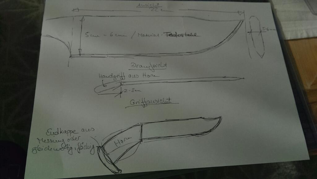 ein sehr guter und langjähriger Freund und ich möchten uns identische Messer bauen lassen. Die Verwendung ist auf den 3D-Bereich begrenzt. Darüber hinaus habe ich eine rudimentäre Zeichnung beigefügt. Hier kurz die Daten: