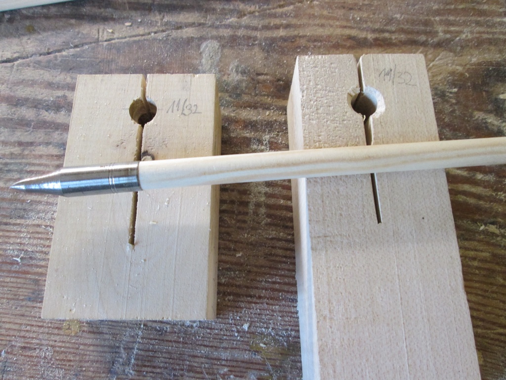 @inge: Mit Bohrmaschine oder Akku-Schrauber hatte ich das auch ausprobiert. Da bekam ich aber dann Riefen an die Spitze wenn diese sich hartnäckig in das Holz gewunden hat. Mit dieser Lösung gibt es keine mehr.