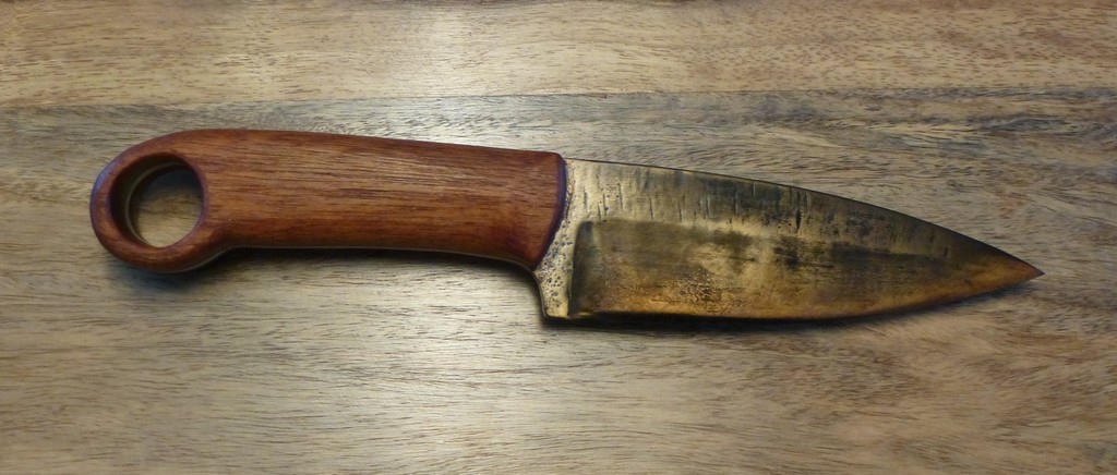 Zum Schluss noch einen Griff aus dem alten Balkongeländer (Bongossi) aufgeklebt und mit dem Messer in Form gebracht … fertig!