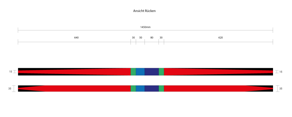 Nun musst du von den Fadeouts auf der Bauchseite zu den Tips auch eine Verjüngung einbringen siehe meine Skizze. Die stärke an den Tips bestimmt bei Manau mit das Zuggewicht. Deshalb ist es ratsam erst mit ca 18mm anzufangen. Bei längeren Staves sogar mit 20mm. Leichter kannst du ihn immer noch machen.