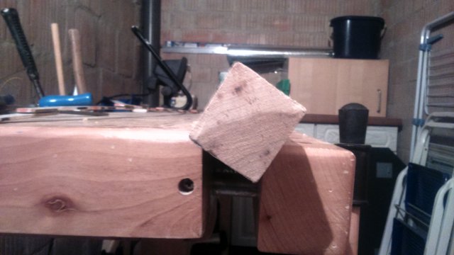 Nach den Photos und der üblichen Werkbankdicke im Vergleich, schätze ich mal deinen Stave auf etwa 4,5x4,5cm Kantenlänge im Querschnitt. Da ist gut viel Fleisch dran, auch wenn er diagonal liegt.