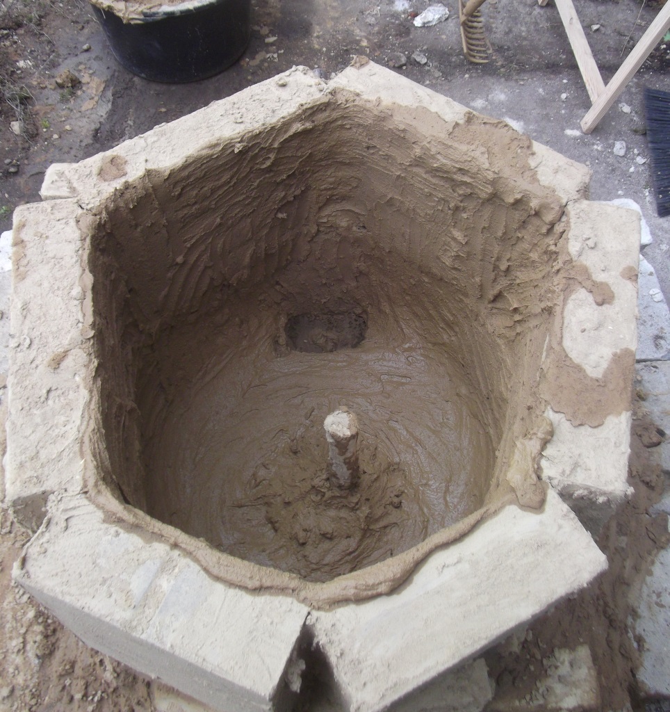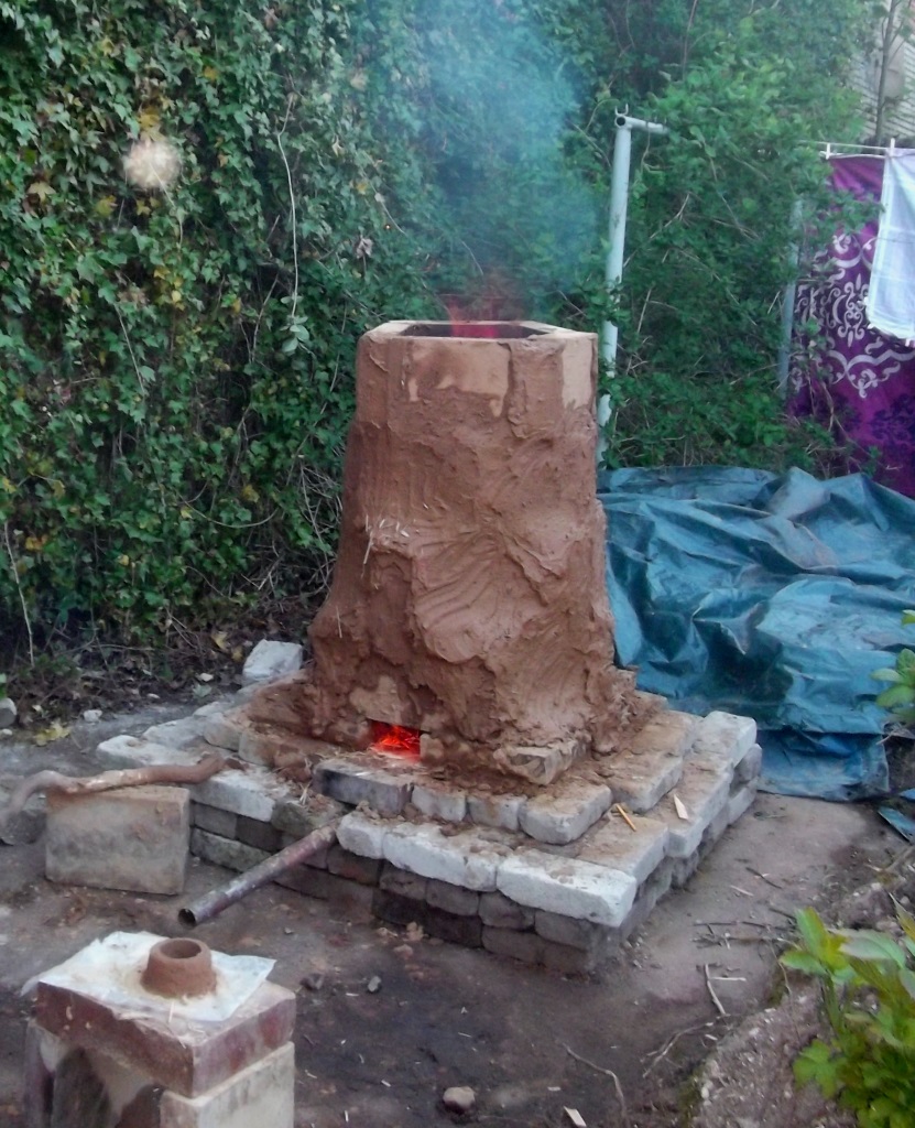 Der Ofen ist Innen bereits vollständig verkleidet, es wurde auch bereits eine ersten Außen-Lehmschicht aufgebracht