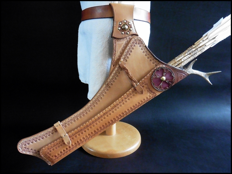 Tolle Arbeit wie immer. Aber wie wird mit dem Köcher verhindert, dass der Gürtel nach unten gezogen wird? Das hat sich mir noch nicht erschlossen. Ansonsten: Wenn ich reichlich Geld hätte, würde ich mich in Deinem Sortiment zu gerne einmal umsehen...