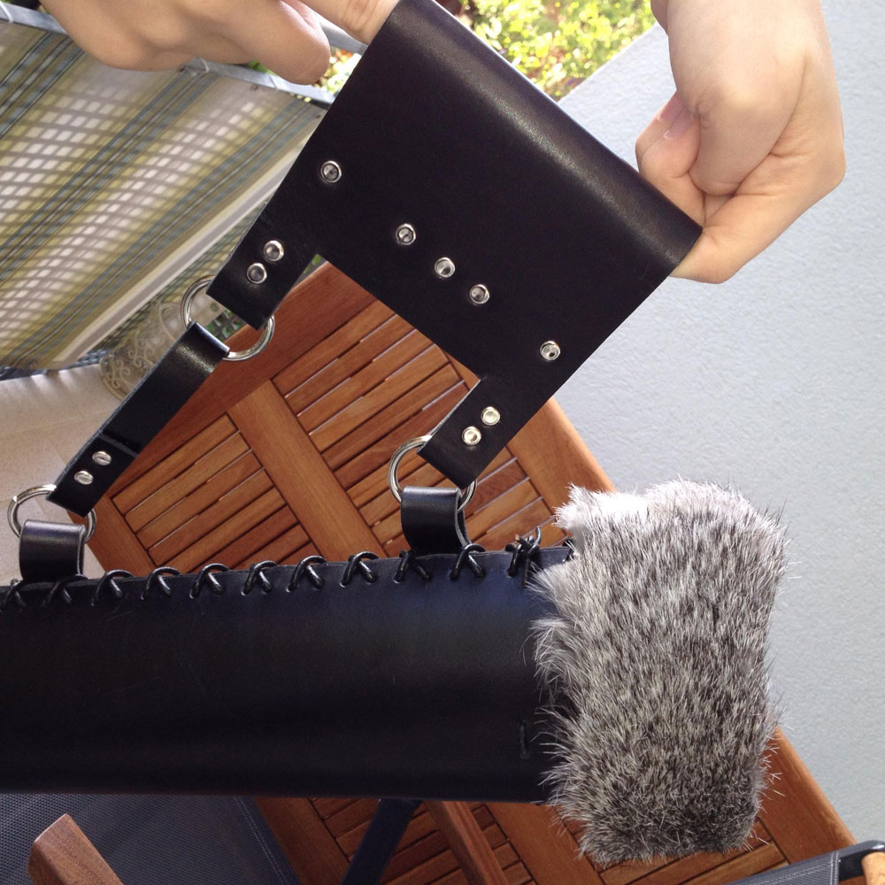 Ansonsten mit Lederrundriemen über Kreuz zusammen gemacht.