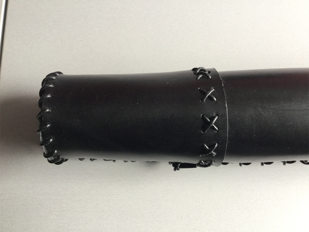 Der Köcher ist aus 3 mm starkem festen Leder - durch einrollen etwas weicher gemacht