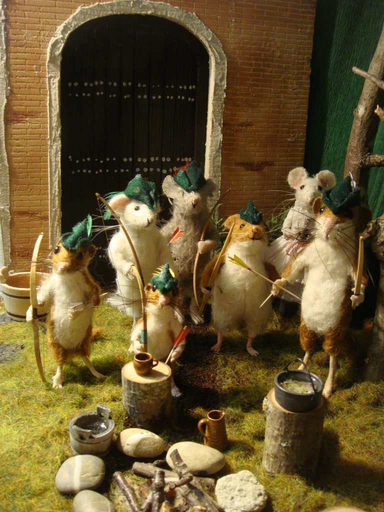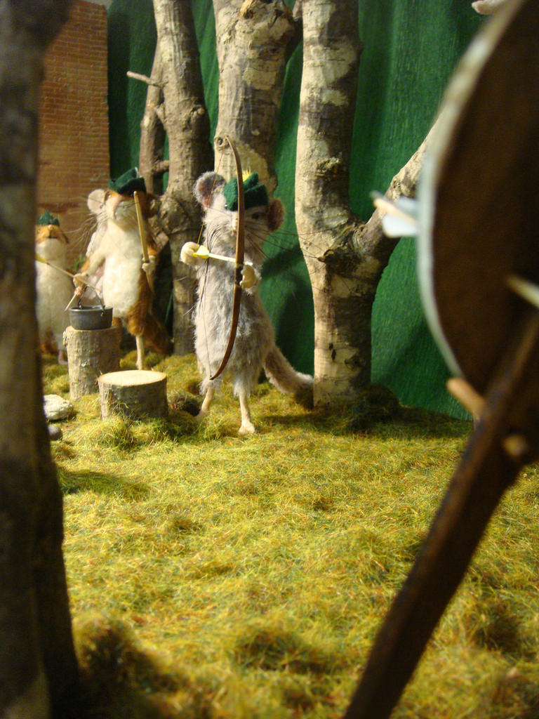 hast du die einzelnen Bögen aus kleinen Ästen gemacht ? Woraus sind die Pfeile ? wie können die Mäuse den überhaupt gespannt halten ? ???
