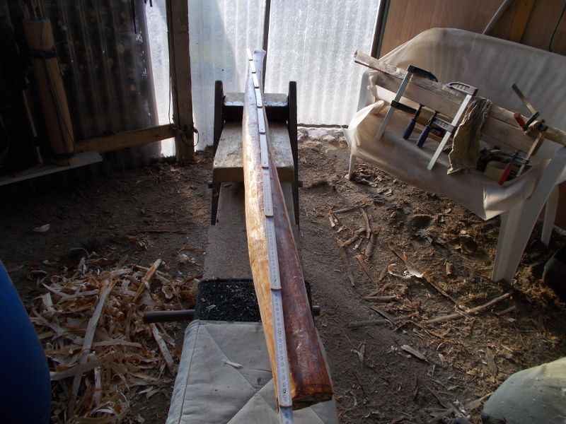 Heute Vormittag den kürzeren Stave ausgespannt und festgestellt, daß die Biegung am Griff noch nicht ausgereicht hat.
