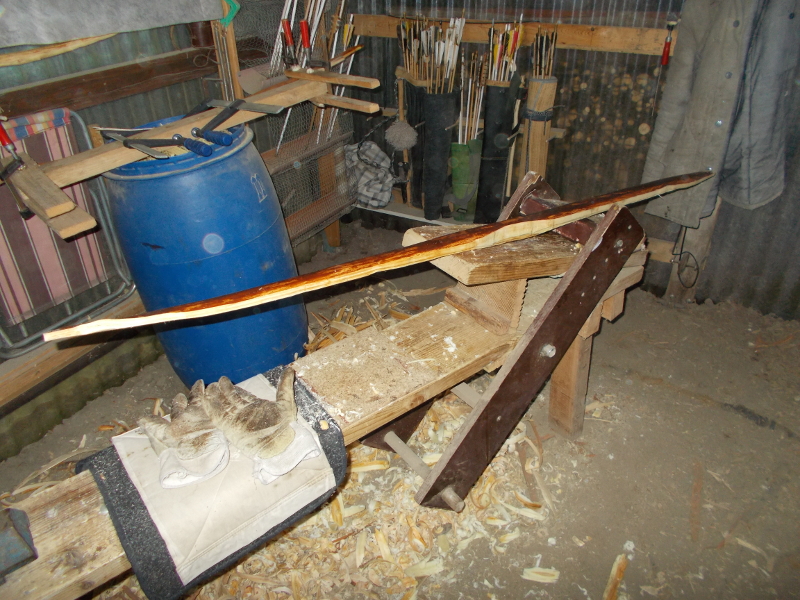 ein Flachbogen werden und sein Bruder vielleicht mal ein Langbogen.beides nur aus Splintholz.