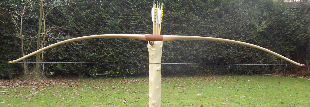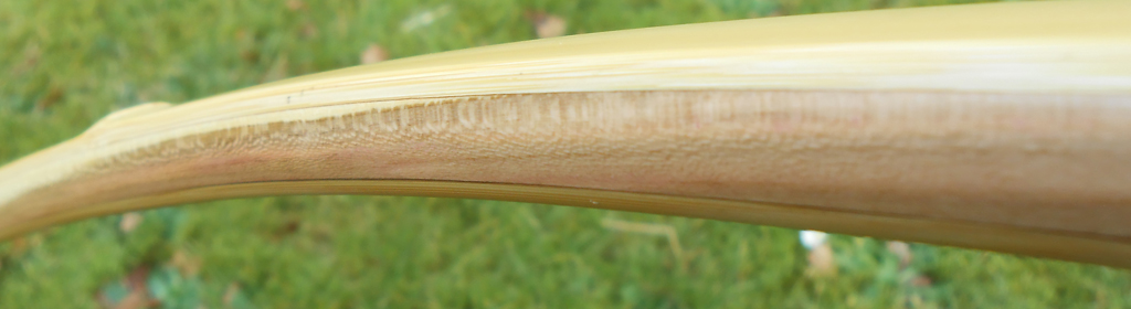 Bei der Stärke des Kernlaminates habe ich mich allerdings ein wenig verschätzt. 8,5 Mitte auf 7,5 mm an den Tipps ist für das geplante Zuggewicht von ca. 50# deutlich zu viel, daher ist der Bogen auch sehr schlank geworden. Die reflexen Wurfarme neigen beim aufspannen mit der Spannschnur zu seitlichen Verdrehungen. Trotzdem hat es eigentlich ganz gut funktioniert, obwohl ich mit dem Ergebnis noch nicht voll zufrieden bin. Der nächste Versuch ist auch schon wieder in Planung/Arbeit, die Bambusleisten sind schon geröstet.