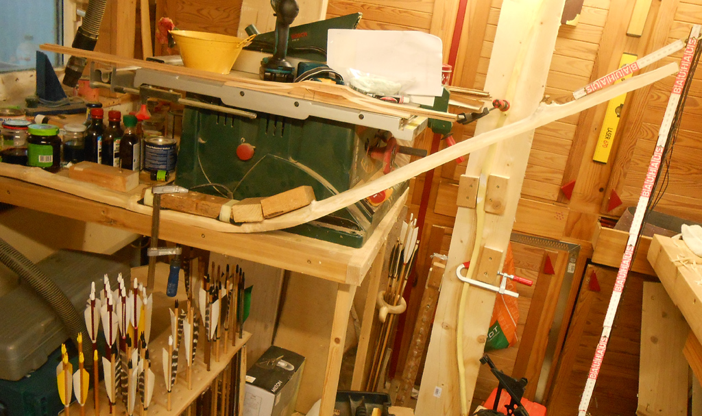 Ich werde wohl erst einmal den Griff von unten her abflachen, so auf 2 cm, dann werd ich Rohling einspannen und versuchen den Reflex vorsichtig rauszubiegen. Wenn es klappt wird der Bogen fixiert und kann dann so trocknen.