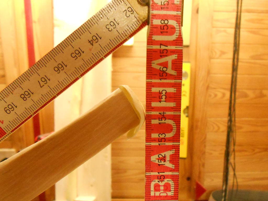 Vor und nach dem Biegen hab ich jeweils einen Zollstock an den hochstehenden Wurfarm gestellt, um zu sehen, wieviel Reflex rausgedämpft wurde.