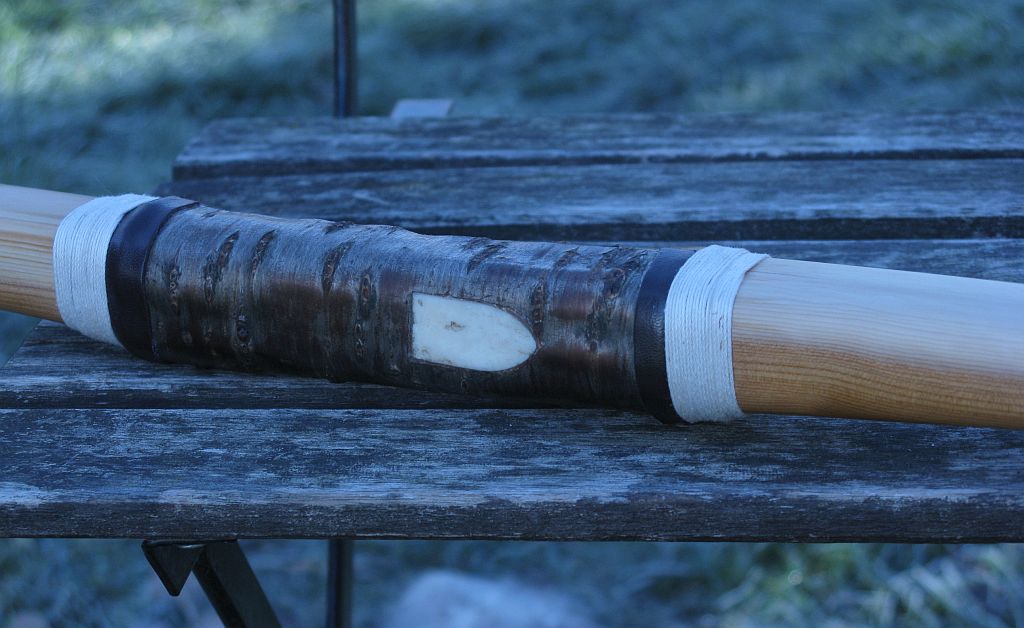 So oder so ist es ein ganz schönes Gefriemel. Speziell beim Anleimen, weil ja der Leim rutschig ist. Ich habe das Kirschleder mit einer Schnur festgewickelt und der Leim brauchte drei Tage um komplett zu trocknen. Die Rinde ist ja fast wasserdicht.