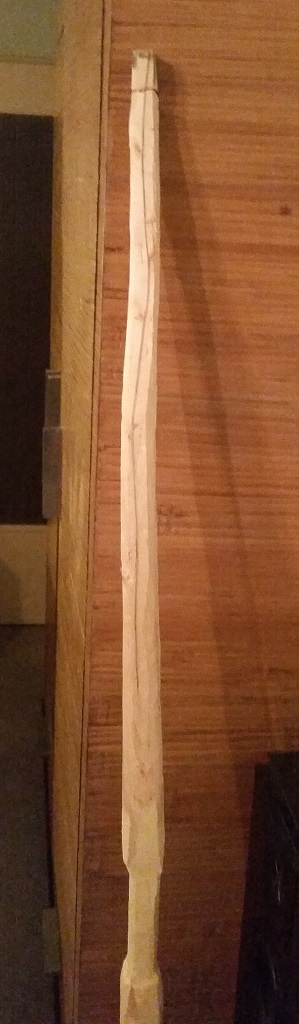 Der Stave ist jetzt nach dem ersten einkürzen noch 175cm lang und hat, geschätzt, jeweils 7,5° - 10° Reflex zu den Wurfarmenden hin.